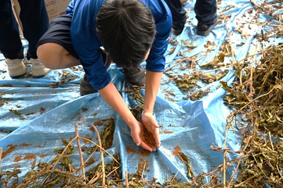 【地域協働】「ゴマウマ大作戦」ゴマの脱穀
