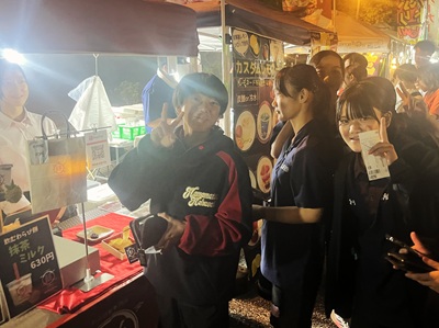 接客を担当した2年の伊倉さんと仲田さんは商品提供の準備、会計に取り組んだ。飲むタイプのわらび餅も含めた豊富なメニューをそろえ、多くの来場者が訪れる盛況ぶりだった。伊倉さんは「普段やっているアルバイトとは違う形で、お客さまと会話しながら交流ができて楽しい」、仲田さんは「実際に作ったものを手渡すのは初めての体験。笑顔で受け取ってくれてうれしい」と刺激を受けた様子だった。