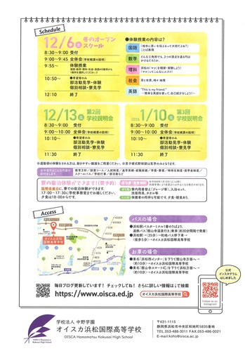 12月6日(土)には冬のオープンスクールも開催します。今回の日程にご都合がつかなかった方は、ぜひこちらにご参加ください。学校の雰囲気や部活動の様子など感じ取っていただけたらと思います。