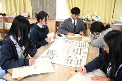 今後、各グループで意見をまとめ、プレゼンテーションを行います。生徒の知識や意見が、10のテーマにどのように反映しているか楽しみです。