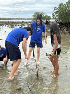 アブラコース2日目は、朝ホテルを出発して、10時頃から地元の子供たちと一緒に、1,000本のマングローブ植樹を行いました。みんなで協力して行ったため、予定よりも早く終了しました。マングローブが人の背丈ほどに成長するのには、15年ほどかかるそうです。生徒たちは、「みんなで植樹したマングローブもしっかり根を張り、すくすくと育つように」と願いを込めて植樹しました。