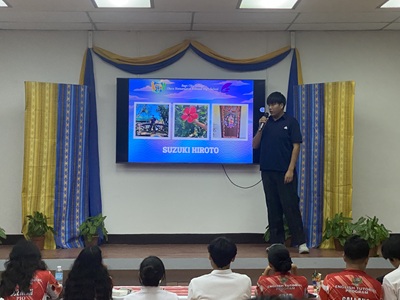 ネグロスコース2日目は、昨日の疲れをとるために、少し遅い時間に朝食をとりました。その後、バゴシティ大学へ。バゴシティ大学では、歓迎会を行いました。歓迎会では、日本とフィリピン両国の国歌斉唱をした後に、本校生徒によるプレゼン発表を披露しました。生徒たちは、英語で日本食の紹介し、日本の食文化を知ってもらうことができました。