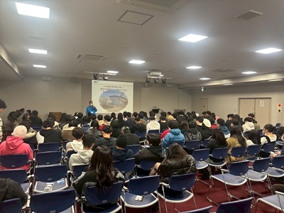 その後、大刀洗平和記念館にて動画をみたりや朗読を聞いたりしました。生徒たちは、館内見学をする中で平和に対する考えを深めることがができました。記念館からバスで2時間ほどかけて、ホテルへ移動。夕食を済ませて、夜は各々の部屋で過ごしました。