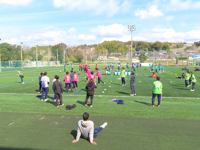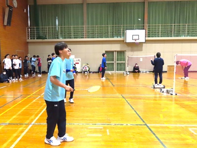 体育館ではバレーボールとバドミントン、サッカーグランドではドッジボールで、それぞれ生徒たちが元気いっぱいにプレーしました。