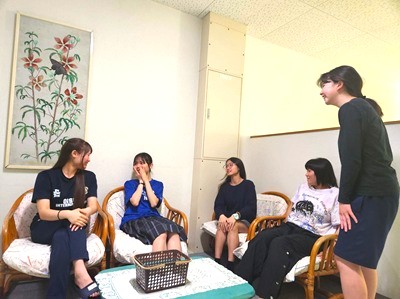 フリータイムには、先輩と後輩が一緒に仲良くおしゃべり。22:30には就寝です。おやすみなさい。
