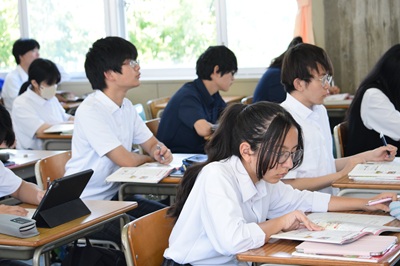 オイスカ浜松国際高校では、お昼になると学年ごと食堂に集まり、一緒に昼食をとります。育ち盛りの高校生がおいしくたくさん食べられるよう調理スタッフが心をこめて調理しています。